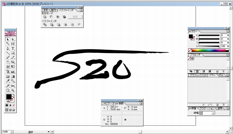 今回は和風な筆文字で「S20」のロゴ入れ塗装を頼まれていまして、データは先日作成しておきましたから後はサイズの確認をします。