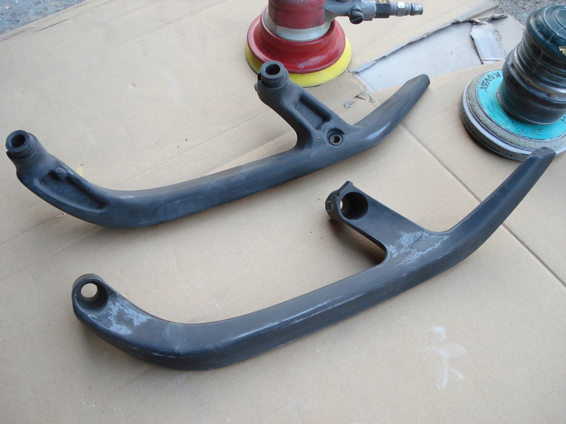 という事で表面を#240のダブルアクションサンダーでクッションパットを付けて研磨します。 クッションパットをつけるのは余り削り過ぎない為で、こういった形状の部品に硬いパットで削るとラインがガタガタになってしまう恐れがあるからですね。