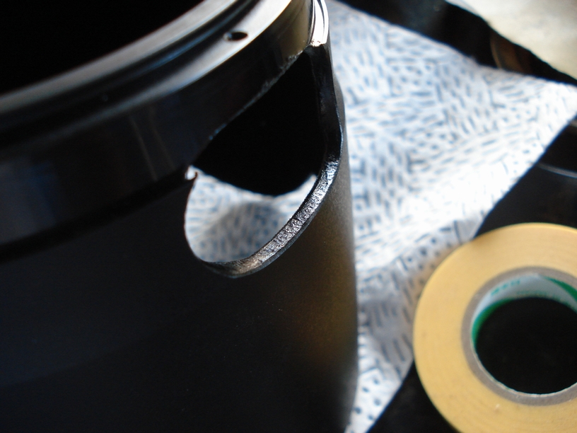 機能性を向上させるのは当然必要ですが、それの犠牲となって美観が損なわれるのは嫌ですので、厚みがついた部分は必用最小限に留めましたが、それで出来た段差の部分は滑らかに仕上げ、まるでフランジ加工をしたような形状にしました。マスキングした上にパテを塗って乾く前に指で形を整えてなど、地味ですが結構凝っています(笑)。