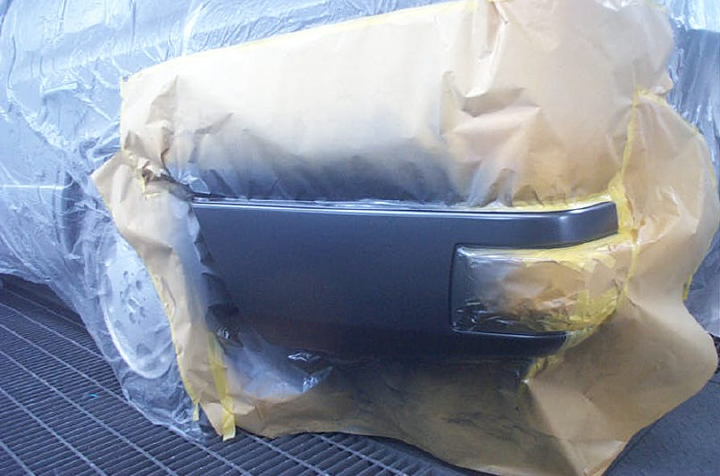 今回最も難易度の高い作業は、バンパー部分の「艶具合」になります。この時代のメルセデスに多く採用された「半艶」の設定です。これ自体の再現はそんなに難しくは無いのですが、問題は「磨き」(ポリッシュ)が出来ない事です。塗装時にゴミが付けばその部分をペーパー(#2000〜#3000)で研磨し、コンパウンドで磨けば平滑にはなりますが(これも厳密に言えば簡単な事では無いのですが…)、つや消し仕上げの場合はこれが出来ません。磨けば艶が出てしまうからです…。