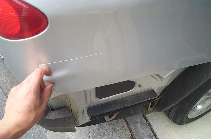 リヤバンパーサイドに10cm弱の擦り傷と、真後ろの部分に3cm幅の凹み&傷の修理になりますが、クイックスポットを同一パネルで二箇所行うのであれば、それに追加費用が掛かってもバンパー一本塗ってしまった方が良いと判断し、オーナー様にも納得して頂きました。なので傷は小さいですがバンパー一本外しての塗装になります(プロフィットスタンダードになります)