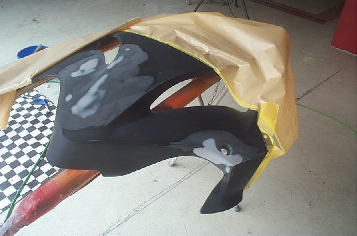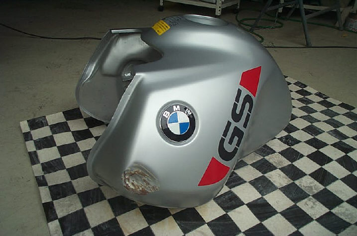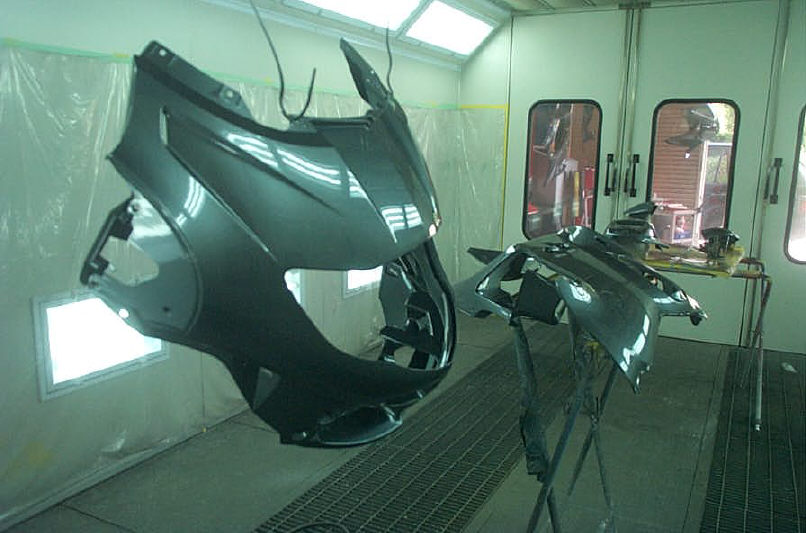極めて個人的な見解では、2輪車だけ塗装を行っていると「本塗り」の技術的レベルが落ちてしまうと思われます(極めて私的感覚です) 二輪車の場合、各部品を分解してしまうと、単体のパーツは極めて小さくなります。今回のBMWはサイドカウルは非常に大きいですが、4輪車の部品に比べてみればドア一枚程度の大きさです。バイク部品は形状が複雑でトリッキーなスプレーさばきが必要だったりはしますが、一見簡単そうに見える4輪車のフラットなボンネットに均一な新車肌を作る事に比べれば、比較的に理想の肌には近づける事は出来ると思います。(かといって現状4輪車の仕上がりに不満を持ってお渡ししている訳ではありませんのでご安心下さい)