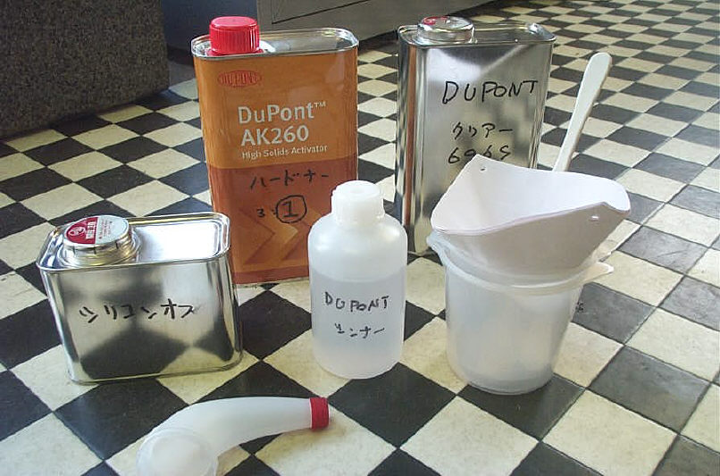 一般的に性能の良いクリアーは高価ではありますが、扱いは簡単だったりします。「レベリング性能」が良ければ肌が荒れずに美しい新車肌を作る事が出来たり、「耐タレ性能」が高ければ垂れ難かったりします。 缶スプレーに対して、スプレーガンは各調整が複雑になる分扱い難く感じたりはしますが、使いこなせるようになれば簡単に缶スプレー以上の仕上がりを得る事が出来ます(私的見解ですが…)。またコスト面でも缶スプレーの比ではありません。2液クリアーであれば必要量だけの作成で済みます。