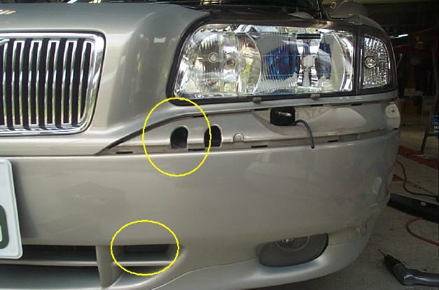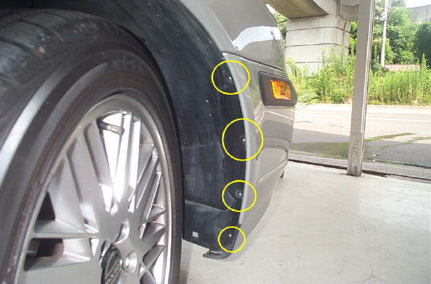 とりあえずは各部品を外します。フロントバンパーはモールと目蔵蓋を外すとボルトが見えます(確か12ミリだったと思います)