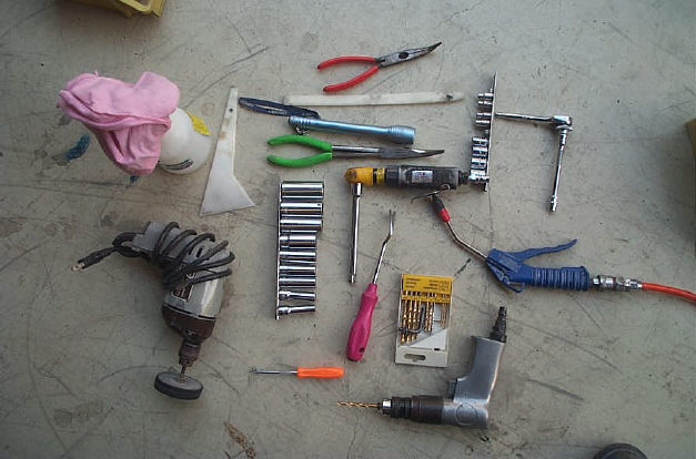 今回の部品取り外しに関して使用した工具です。中には絶対に必要では無い物もありますが、「あれば助かる」的な工具は仕事をする上では必要です。