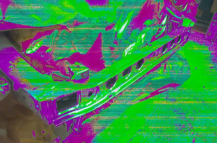 ランチアの時にも起きたデジカメのトラブルです。コアサポート全体を塗った写真なのですが、またサイケデリックな画像になってました…。(代わりがありません。スイマセン…)