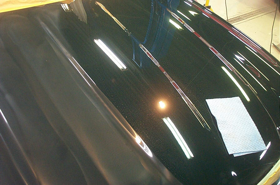 本日はとりあえず上面(ボンネット・ルーフ・トランクリッド)を仕上げます。明日はリフトで車体を持ち上げ側面のポリッシュ工程に入ります。これは作業者的に楽になります。