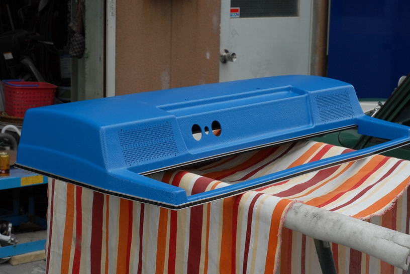 ![]() こちらはアメリカ製のエレクトリックピアノのカバーです。元々は黒かった物を、ご要望のブルーで半艶仕様にしました。 後で知ったのですが実はオーナー様は著名なアーティストの方でした。 |