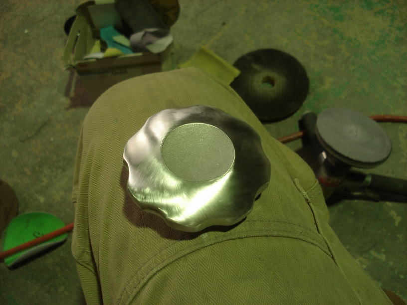 ![]() ペーパーの番手を徐々に細かくしていき、最後はコンパウンドとポリッシャーで艶を出します。 中心部分は塗装するのでサンドブラスト目を残しておきます。ここまで光らせてしまうと塗料の密着性が落ちてしまうからですね。 |