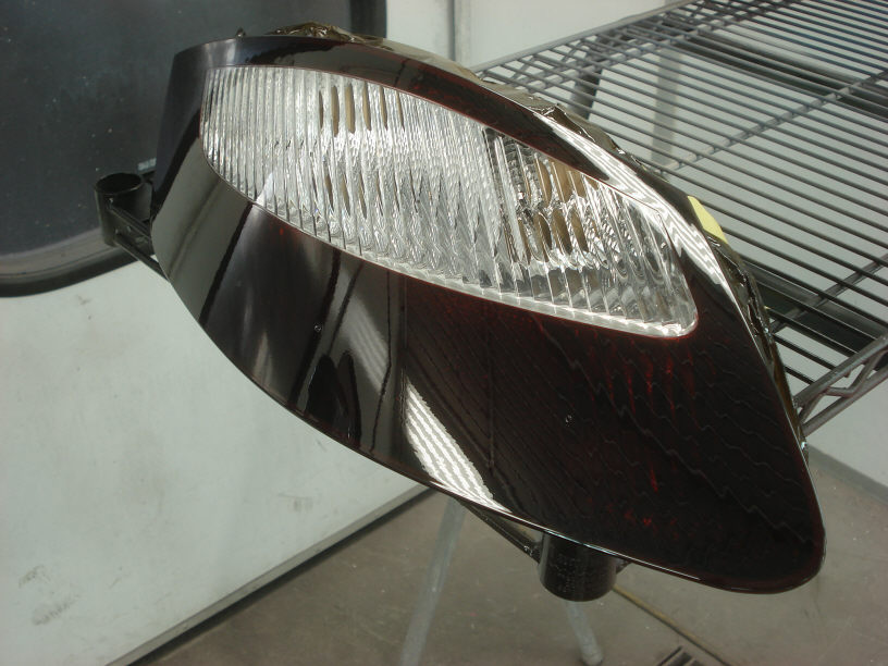 ■本塗り ![]() 全てをスモークにしてしまう「ベタ塗り」も良いのですが、逆に部分的にスモークを掛けない事により、上品さを表現したスモーク化も可能だと思います。格子状になったクリアーレンズが美しいですよね。 テールランプの塗装は、プラスチック素地への塗装となりますので、下地にはプラスチック専用のプライマーを使用します。 |
