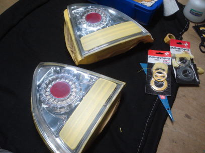 ■社外品を純正風に こちらは以前のプロフィットからのご贔屓のお客様で、結構古い車体にも限らず、かなりの高美観を保った車両で維持されています。かなりお気に入りの一台との事です。 今回は社外品のLEDテールランプを購入されたのですが、オーナー様の好みとしては、この「いかにも社外品」といったクリアーのテールレンズが気に入らないとの事です。 スモーク仕様にすればこのクリアーも解らなくなると思いますが、オーナー様のご要望はあくまで「純正」になりますので、結果として純正同様に「透過性のある赤」を塗装で行う事になります。 |