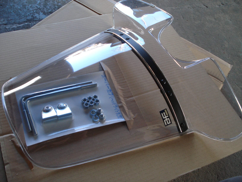 寒くなって来たので「風防」を買いまいた。バイクの前に着くクリアーのパネルですね。
