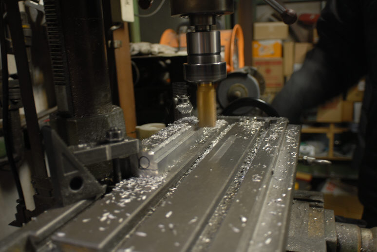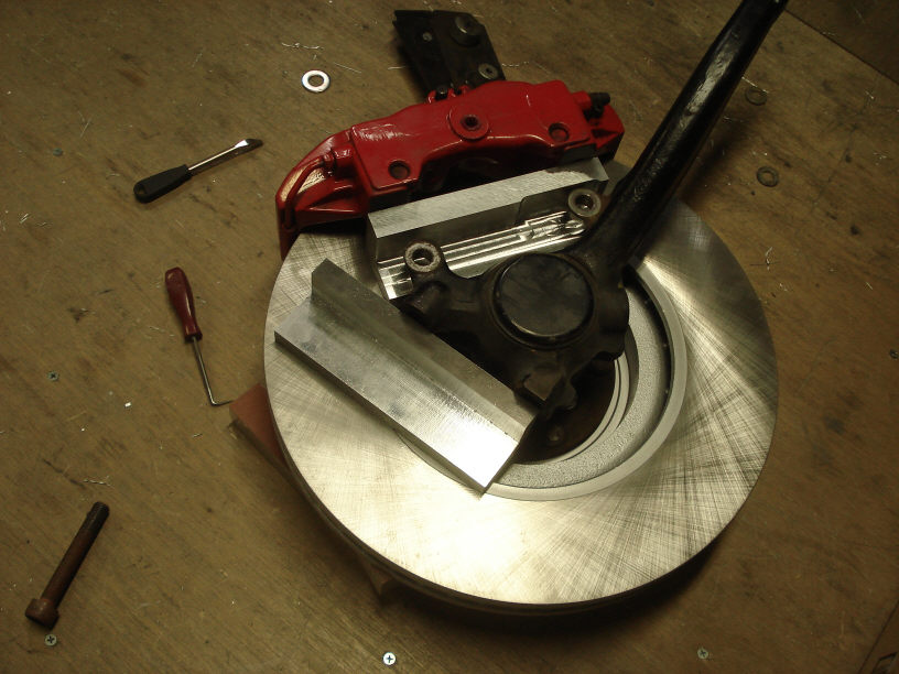 TACに出入りしている方の仕事(?)で、主にポルシェ用のキャリパーを色々な車体に装着出来る様なステー(?)を作製しています。旋盤でアルミ削り出して作っています。 私と同じく、TAC内の設備を使わせて貰っての居候的な方ですね。