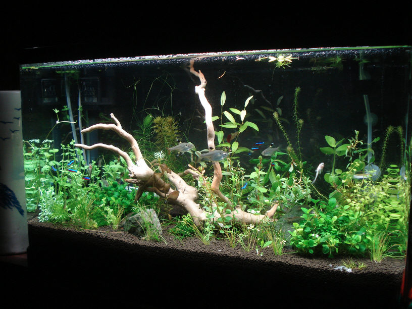それにしても水槽は面白いです。 私的に大好きな「石」「草木」「水」「魚」「土」「光」どれもが詰まってます。 水草があれば水質も安定するので(硝酸塩の分解でしたっけ?)メンテナンスも驚く程楽です(海水もやってますがこっちはやはり大変ですので…)。