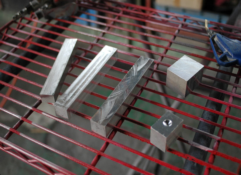 で、ブレンボ社のブレーキキャリパーを色々な車種に付ける為のブラケットを作製している内に、ジュラルミンの廃材が結構出てきます。アルミ素材は勿論資源になるので捨てる訳ではありませんが、ある程度良質な物を頂いて文鎮を造る事にしました。