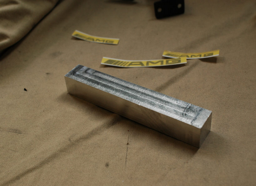 今回は、AMG純正のブレーキキャリパー塗装と平行して作業するので、それと同じ仕様の文鎮を作る事にしました。ちょっとマニアックですが、好きな人には堪りませんね…(壊)。