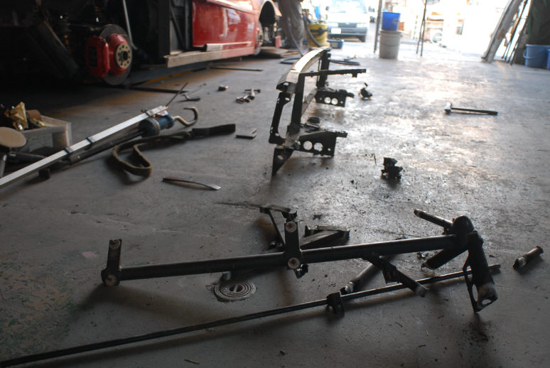 画像は溶断でバラバラになったリヤフレームですね。不要な部分は溶断して使う部分のみにスッキリさせてます。