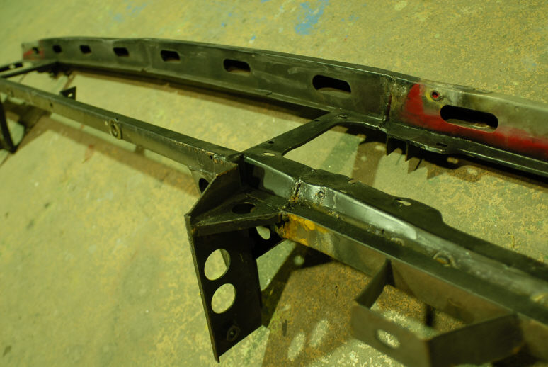 画像はその部分で、一旦下側にあるゴツイフレーム部分の溶接が終わったので、その次にその上にある細いフレームを繋ぎます。