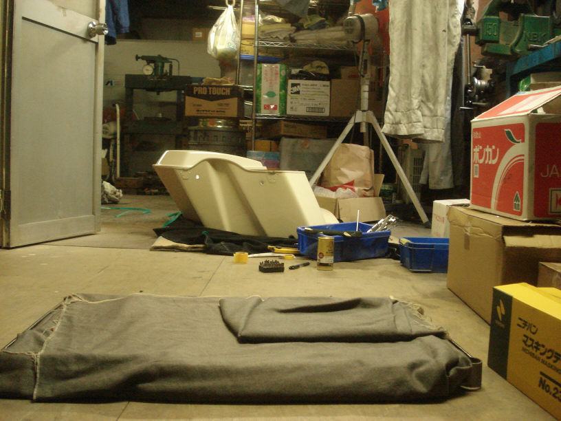 最近はTACより私の方が遅くなったりする事が多いので、現場は終了させて(電気を消して)、この2階部分で分解や組み付けなどを行う機会が多くなりました。薄暗く見えますが、手元は結構明るく作業出来ます。こういう感じ、良いですね…。