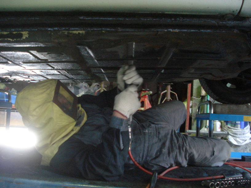 ちなみに画像はポルシェの下回りのボディーシューツをハクル(=剥離する)ゴトー氏です。超怪しいですね…。 1965年式のポルシェ(ナローとか言ってたような気がしますが)らしいです。40年以上前ですか、古いですね…。