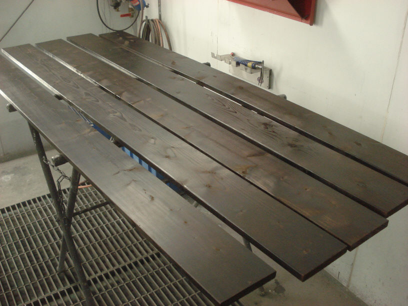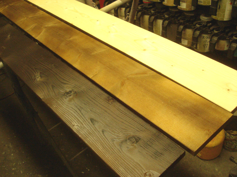 今回はかなり濃い目で渋く仕上げてみました。廃れた感じですね。 本当は古材を使いたかったのですが、値段が桁違いですので。(と言うより良質の物は2桁違いますね…)