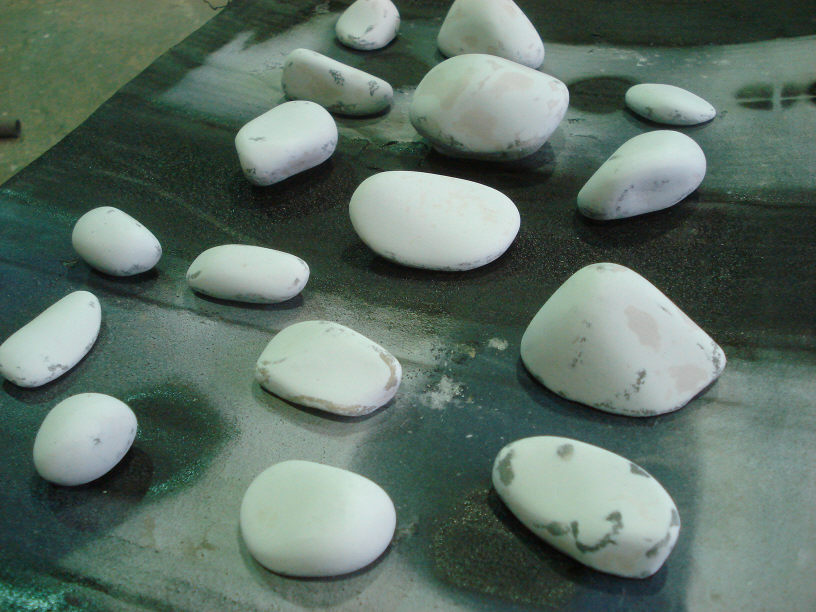 今日はちょっとした小物パーツ3点の塗装(業者様の仕事)のみだったので、サンプル作成物の「石」の塗装を進行する事にします(単に仕事が無くて暇な感じなのですが…)。