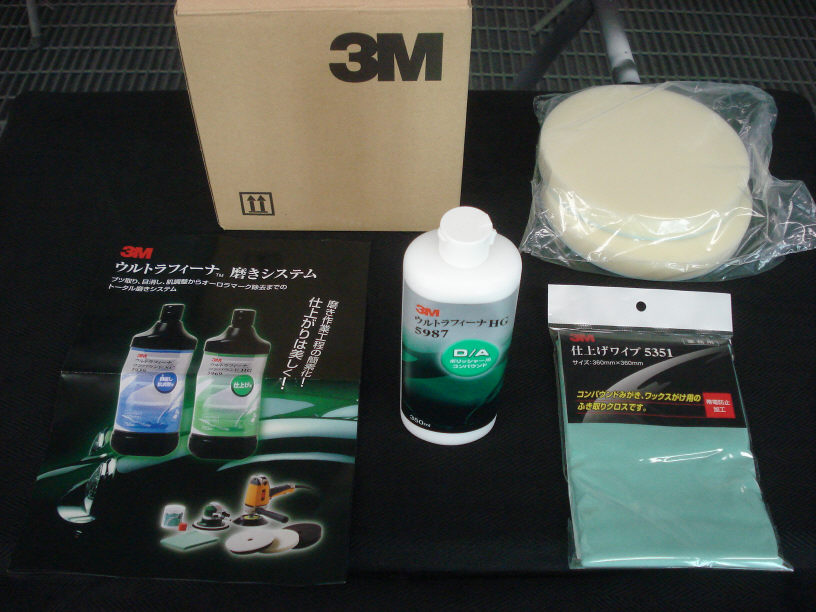 とりあえずはいつもお世話になっているオートサプライヤーさんからの「特売セット品」が何個か確保出来たので紹介いたします。 私も愛用している3Mのコンパウンド「ウルトラフィーナ」の細かい方のコンパウンドと施工用のセットですね。内容は…