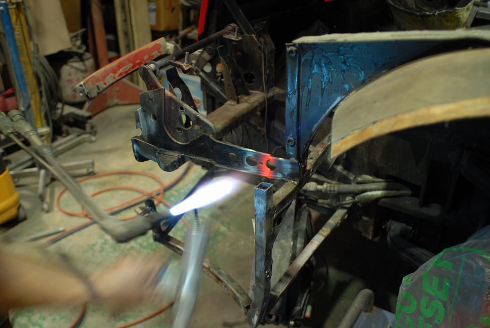 酸素で炙りつつハンマーで打ち込んでいくと中に通した角パイプによって周りのフレームが真っ直ぐになってきます。シャキっとなりましたね。