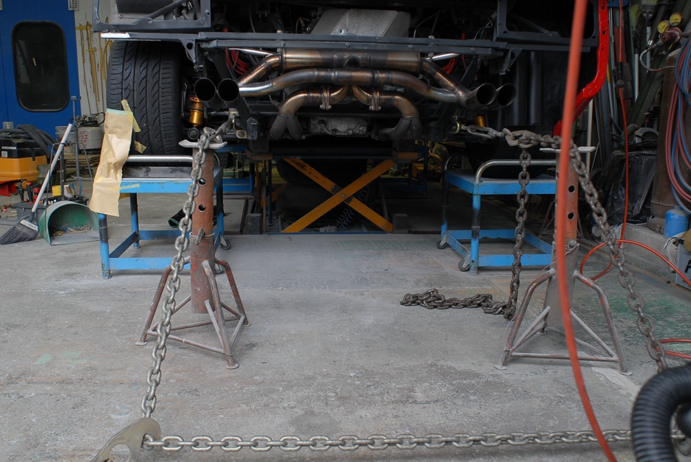 フェラーリの場合、どこか一か所をジャッキアップすると車体が捻じれてリヤガラスやフロントガラスが割れるらしいので、修理する前にまずこれを地面に埋め込んでいました(爆)。出っ張っていると色々面倒らしいので(車高が低いと引っかかってしまうらしいです…)。