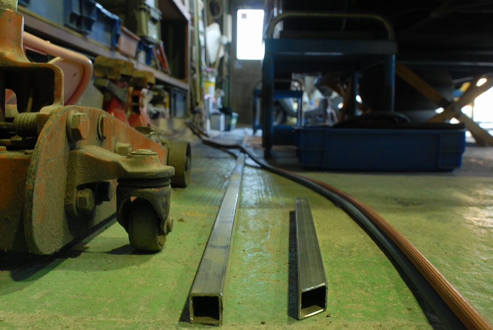 これよりも厄介だったのが手前のフレームのようで、こちらは15mm×20mmと「長方形」だったのでこの規格品は存在しないらしく、仕方が無いので足りない分は20mm角を縦にカット(?!)してまた溶接して作っていました。まあ何でもやりますね…。