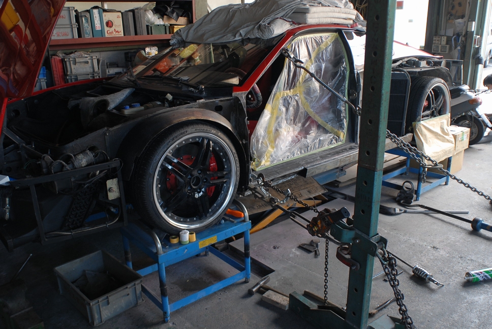 テスタロッサのひしゃげたフレームは一旦車体から外されて修正しています。