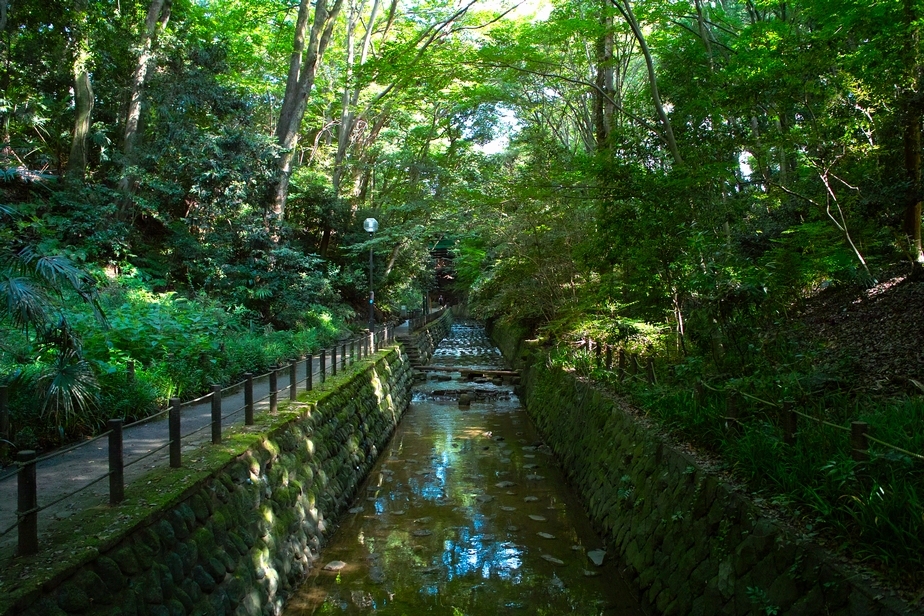 ここは都内唯一の渓谷公園との事で、冷たい湧き水のお陰なのか周りと比べてびっくりするくらい気温が低いのです。 自転車で走っているとまるでクーラーの風に当たっている程の涼しさなので、世田谷近辺の多摩川沿いを走る時があれば立ち寄ってみるのも良いかと思います。確か日中には渓谷内にある御茶屋さんも営業しているのでそこで葛餅が食べれたりもする筈です(って敷地内はそこまで広い訳では無いのですが、神社も併設しているのでそこそこ楽しめるとは思います)。
